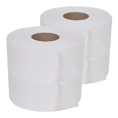 Keep restrooms fully supplied with these jumbo rolls of two-ply bath tissue. These rolls are 1000 feet long to supply an ample amount of toilet paper for restrooms so it’s easy to stock up. The two-ply construction ensures the bath tissue is durable and requires less per use than one-ply toilet paper. This Scott Essential two-ply toilet paper comes in four rolls per case, perfect for use in offices, schools, restaurants, hotels, and more.
