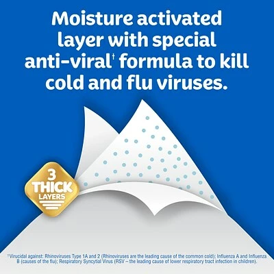 Kleenex AntiViral tissues are the only tissue that can kill 99.9% of cold and flu virusesโ . Made with thick, soft plies and a moisture-activated middle layer that kills 99.9% of cold and flu viruses in the tissueโ , making them the perfect 3-ply tissue for your home, office, or school.