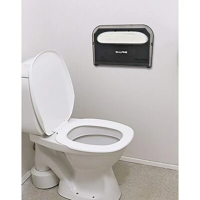The Alpine Industries Toilet Seat Cover Dispenser comes in a trendy and clean black color, making it the perfect accessory to fit against any bathroom wall and color. Made from Polypropylene material, our Toilet Seat Cover dispensers offers long lasting service life, chemical resistance, easy mounting and locking. Making it the perfect tool to have in any public restroom facility. Securely holding 2 boxes of toilet seat covers for easy access. It locks the boxes in place to avoid spillage. Easy to mount using two screws that are included. Dispenses two 250 Half-Fold flushable toilet seat cover boxes for less frequent bathroom refilling. Alpine Industries Half-Fold Flushable Toilet Seat Covers are the perfect solution to your public restroom needs. Perfect for any public or stadium facility with restroom service or personal use on family road trips or on business trips. Comes in 3-pack quantities of 250 half-fold sheets (750 total). The Alpine Industries toilet seat covers are self-disposing and flush without touching. The universal design fits common toilet seat configurations.