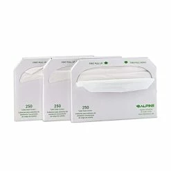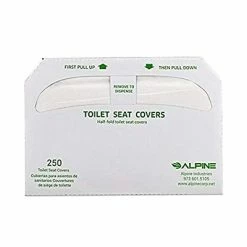 An easy, economical solution to a common problem, the Alpine Industries Toilet Seat Cover Dispenser distributes clean, sanitary seat covers in high-traffic restrooms. Allow your patrons, employees and visitors to have peace of mind when using the restroom by providing them with seat covers that will reduce the spread of germs. Made using 304 stainless steel construction, the Alpine will provide long-lasting strength and use for years to come. It features a rectangular shape with an arch-shaped dispensing area and is furnished with a brushed finish that will fit into and enhance any existing decor. The dispenser measures 11.8 in. H x 15.7 in. W x 2 in. D, weighs only 2.5 lbs. and comes with included hardware so you can easily mount onto any wall or stall area. It will make a great addition to any frequented restroom, including offices, restaurants, break-rooms, hospitals, healthcare facilities, schools, rest areas and much more. For added convenience, the Alpine dispenses 1 cover at a time and can accommodate up to 250 single or half-fold toilet seat covers to reduce the number of times it needs to be refilled. When the need arises, it can be easily filled up again from the bottom of unit. Alpine Industries Half-Fold Flushable Toilet Seat Covers are the perfect solution to your public restroom needs. Perfect for any public or stadium facility with restroom service or personal use on family road trips or on business trips. Comes in 3-pack quantities of 250 half-fold sheets (750 total). The Alpine Industries toilet seat covers are self-disposing and flush without touching. The universal design fits common toilet seat configurations.