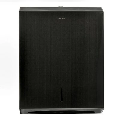 The Alpine Industries C-Fold/Multi-fold paper towel dispenser is ideal for high traffic restrooms, break rooms, food service facilities, health-care facilities and more. Made of durable 304 stainless steel with a brushed antique bronze finish, features a lock to help prevent tampering and vandalism and a sight window on the dispensers front to monitor fill level. It has a clean, modern design, sporting a slanted top and bottom for added style while also preventing it from being used as a shelf. This will help to minimize everyday wear and tear as well as ensure long-lasting use. Fashioned to efficiently dispense 1 towel at a time, this high-capacity dispenser features a wide slot on the bottom for easy access to towels. It can accommodate up to 400 C-fold or 525 multi-fold towels at once, making it perfect for high-traffic locations and heavy use. Set of 2.