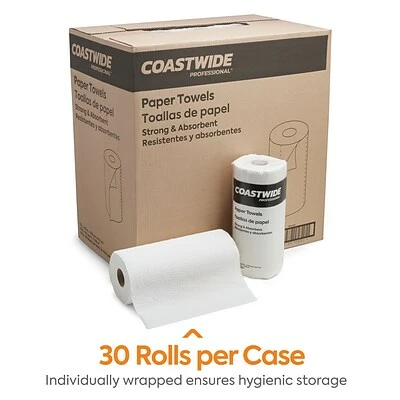 Manage the cleaning and dining needs of your workplace kitchen or bathroom with these durable Coastwide Professional paper towels. Each one has a classic white color to clearly indicate fully clean counters and comes in a two-ply thickness for superior absorbency. Each roll of towels is individually wrapped for safe storage and sheets are perforated for convenient dispensing so you can keep a roll on hand to offer easy hand-drying anywhere it’s needed.