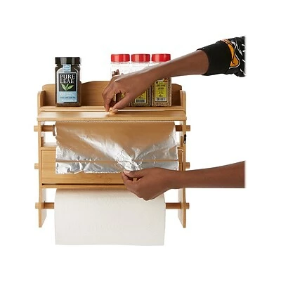 Mount your saran wrap, aluminum foil and paper towels all in the same place. No longer do you have to ramage through your drawers to find something to keep your food fresh. You can now take it from the same place and know where the required items are.