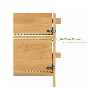 Built-in razors allow you to precisely tear off the amount of foil, saran wrap, or wrapping paper you may need