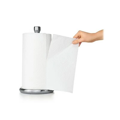 The OXO Good Grips paper towel holder clears countertop space and makes paper towels more accessible than ever. The smooth rotation allows for easy, one-handed ripping, and the knob is designed to keep even large rolls in place. The angle of the base makes installation easy and the die-cast bracket and knob will never rust, and you can install it in walls or under cabinets.