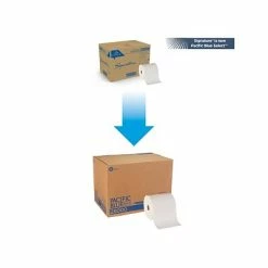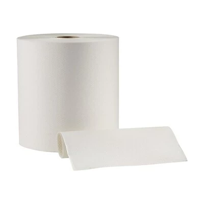 Clean up messes easily with these premium white hardwound two-ply paper towels. The two-ply thickness provides strong durability and absorption, letting you rinse and reuse if needed. These paper towels can be placed on a counter top, in an open tray or loaded into a dispenser, offering versatility. With the bright white color of these Pacific Blue Select Premium hardwound two-ply paper towels, it’s easy to see when the job is completed.