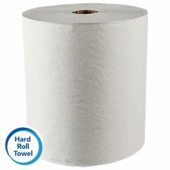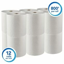 Keep these hardwound paper towels in stock for all your drying needs. These paper towels are made from 100 percent recycled fiber and are soft on skin but tough enough for mopping up spills. Each high-capacity roll contains 800 feet of paper towel, so they last a long time and can be replenished less often, while the 1.5-inch core fits most standard dispensers. This 12-roll case of Scott Essential hardwound paper towels lets you supply multiple areas or stock up for future use.