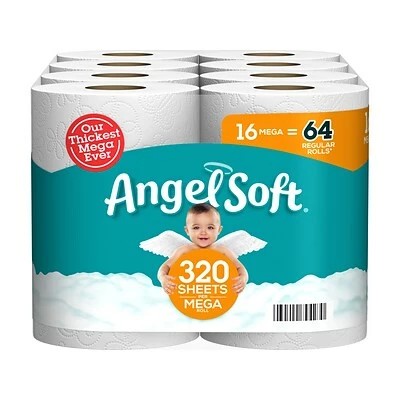Angel Soft’s Mega roll toilet paper delivers even more of the softness and strength your family relies on with 20% thicker sheets, and always at a price that fits your budget. Each Mega roll contains 320 2-ply sheets, fits standard bathroom toilet paper holders, and is flushable and septic safe in standard sewer and septic systems.