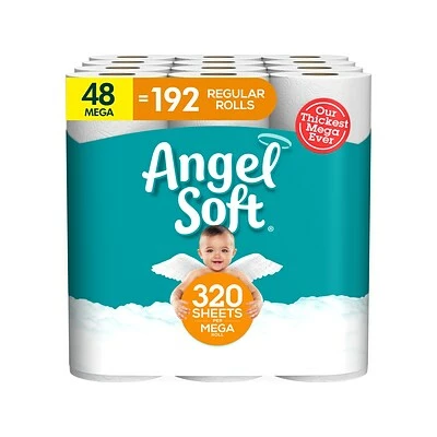 With Mega rolls, the Angel Soft toilet paper delivers even more of the softness and strength your family relies on with 20% thicker sheets, and always at a price that fits your budget. Each Mega roll contains 320 2-ply sheets, fits standard bathroom toilet paper holders, and is flushable and septic safe in standard sewer and septic systems. Pick up a pack today.