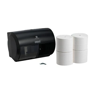 Each kit contains one side-by-side double-roll bathroom tissue dispenser and four 2-ply 750-sheet rolls