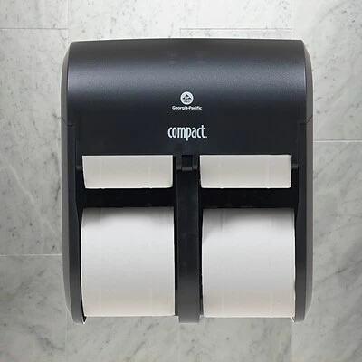 Compactยฎ coreless toilet paper dispensing systems answer key needs for facilities managers when it comes to toilet paper for the restrooms. These high capacity systems help you avoid running out between service intervals and help reduce maintenance time typically spent changing out conventional toilet paper rolls. These systems save up to 95% in packaging waste compared to GP PROโs standard roll toilet paper by eliminating stub-rolls, corrugate cores, paper roll wraps and the outer cardboard shipping case. And because the Compactยฎ case has a smaller footprint, it requires less storage space. Compactยฎ coreless toilet paper dispensers are designed to give the facility high capacity for continuous service. GP PRO is a division of Georgia-Pacific Consumer Products. We deliver well-designed, durable and easy-to-maintain professional solutions to meet the handwashing and cleaning needs for a range of business applications.