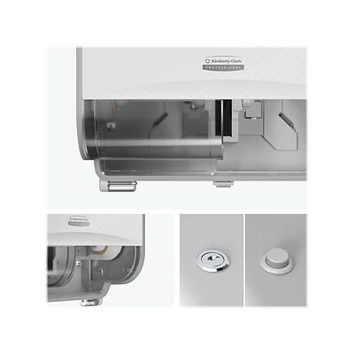 The Kimberly-Clark Professional ICON coreless standard two-roll horizontal toilet paper dispenser with faceplate elevates your restroom aesthetics to the same high standard as the rest of your facility.