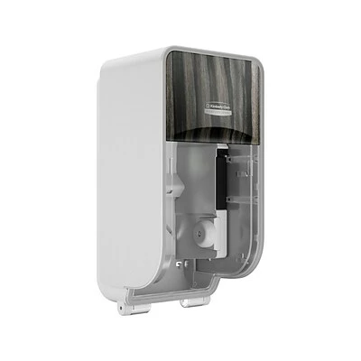 The Kimberly-Clark Professional ICON coreless standard two-roll vertical toilet paper dispenser with faceplate elevates your restroom aesthetics to the same high standard as the rest of your facility.