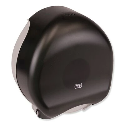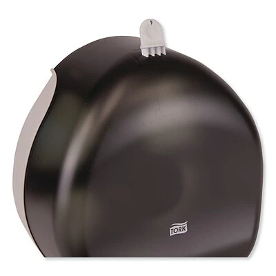 The Tork® Jumbo Bath Tissue Dispenser is a high capacity dispenser solution that helps to reduce maintenance costs and service interruptions, suitable for any washroom or restroom environment. This clean, modern appearance complements all decors. The translucent front cover allows for “at a glance” inspection to know when refills are needed. Smooth cover is easy to clean and maintain. Built-in pilferage control with this locked dispenser, key included. High impact plastic and design help prevent damage.