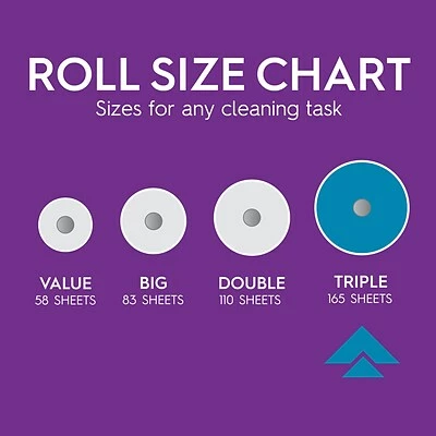 Viva Choose-A-Sheet multi-surface cloth paper towels are designed with a unique texture to lift and trap mess on the kitchen countertop, bathroom surfaces, and all the rooms in-between. Two absorbent layers soak up the mess and clean metal, granite, glass, and wood, helping you maintain an exceptionally clean home every day. The pack includes six triple rolls, with 165 sheets per roll and perforations that let you choose the sheet size for your task.